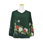 デコルテを美しく見せるVネックや、キュッと絞った袖口のディテールが大人可愛い。シャツブラウスとして一枚で、前開きでカーディガンのように軽めの羽織としても。和を感じさせる柄が上品、コーディネートに彩りを。/One Size